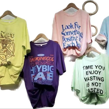 بيع بالجملة مخزون الكثير سعر رخيص ، تي شيرت كبير الحجم برسومات للفتيات والنساء